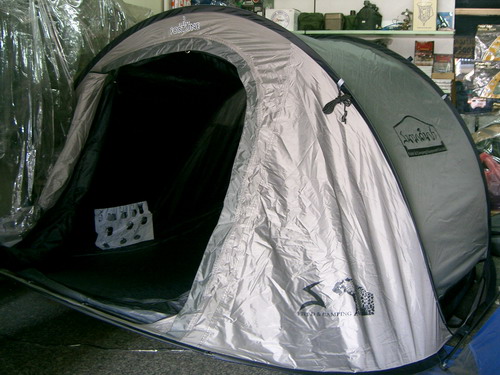 เต็นท์สปริงแบบ 2 ชั้น ชั้นนอกเป็นแบบฟลายชีท กันฝนและน้ำค้างได้ มี 2 รุ่น