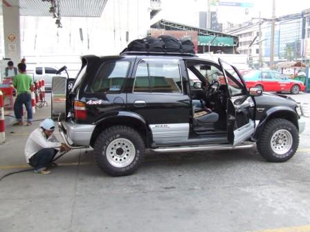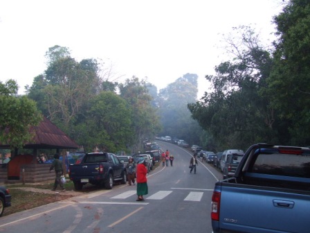 แต่ครั้งนี้รถมีปัญหาใส่ 4H ขับบนเขาแล้วมันดังกึกๆ เหมือนเราขับรถเหยียบก้อนเหล็กแบ่งทางบนถนนนะครับ ไม่รู้เป็นอะไร เดี๋ยวจะเอาไปให้คุณสัญญาดูให้แล้วก็จะได้เอาถุงนอนไปฝากให้ท่านแม่ทัพเลย (รูปนี้แอร์เป็นน้ำแข็งลมไม่ออกต้องจอดดู แก้ไขโดยการให้น้ำแข็งละลายให้หมด แล้วปรับปุ่มควบคุมขึ้นมาหน่อย)