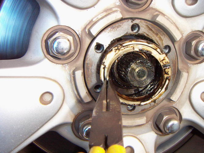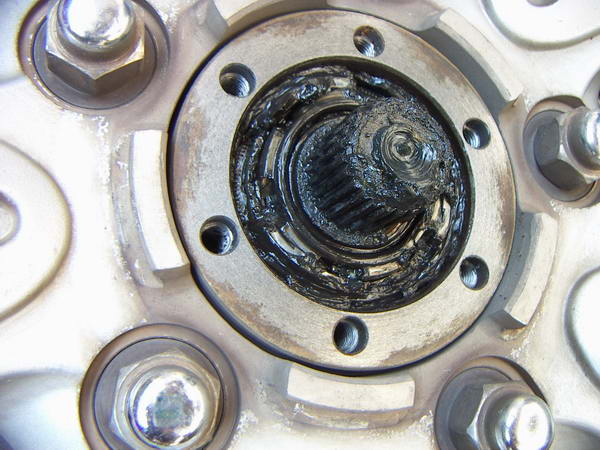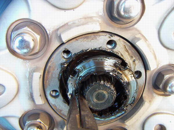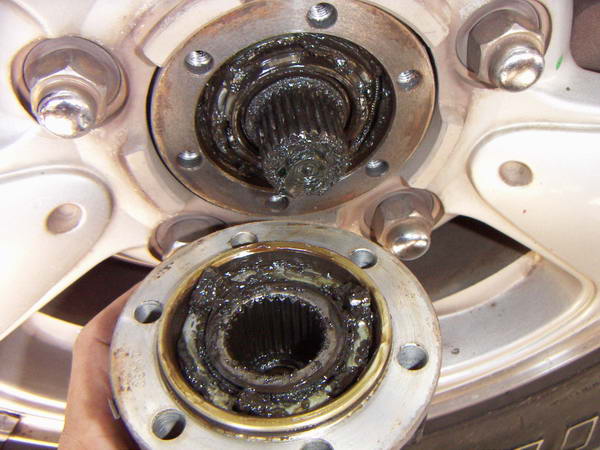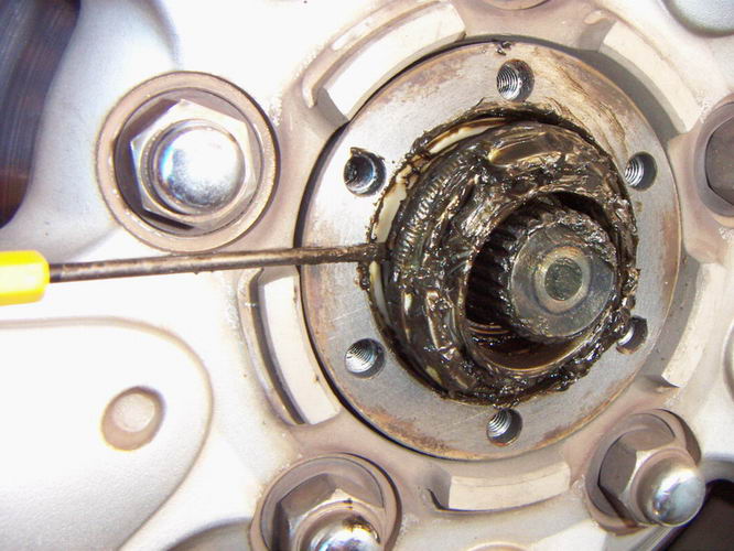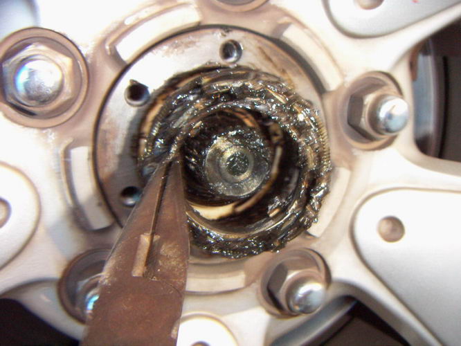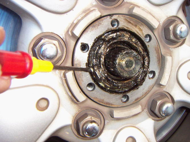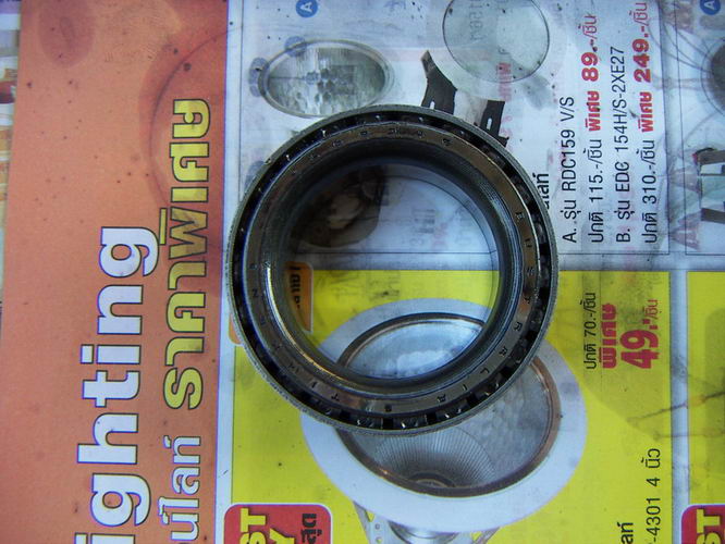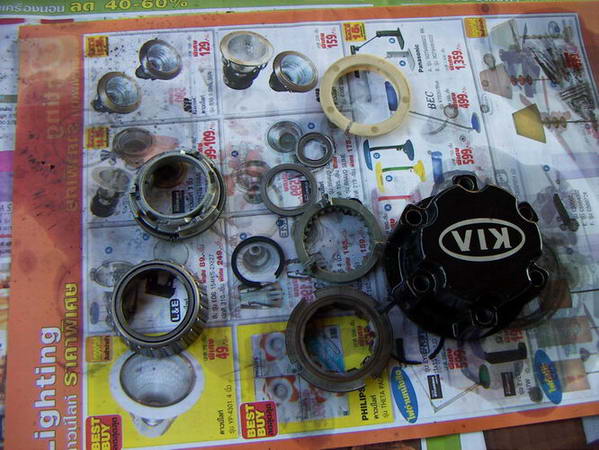 วันหยุดที่ผ่านมากะว่าจะไปกินปลาแถวๆชานเมือง เส้นทางเป็นหลุมเป็นบ่อโคลนตะหลอดสายไม่ต่างจากหม้อขหนมโครก ล้อหมุนเกือบเที่ยงแล้ว ด้วยความหิว (จนตาลาย) บวกกับความร้อนจากแสงแดดจืงทำไห้ น้ำหนักทั้งตัวลงไปกองอยู่ที่แป้นคันเร่ง ทำเอาน้ำโคลนถ้วมหลังคารถเป็นว่าเล่น แอบแชง (เพราะแรงน้อย) วีโก้ชีวเลย แต่ก็ไปไม่ลอด รู้สืกหนักที่พวงมาลัย เบรกก็ไม่จับ เอาละชิ! งานเข้าแหงเลย! เอาไงดี, ก็ต้องหาที่จอดข้างทางชิครับ หลบเจ้าโก้ก่อน ลงมาดูล้อหน้าช้ายเป๊เลยครับพี่น้อง! รีบขันแม่แรง ถอดล้อออกก่อนเลย เจอลูกปืนทั้งชุดหลุดออกมากองข้างนอก นืกออกได้ว่าเคยอ่านกระทู้พี่เกียพิดโลกวิทีถอดประกอบลูกปืนล้อหน้า เลยใช้ความรู้ที่มีอันน้อยนิด แก้ไขสถาณการไปก่อน ได้ผลครับ กับบ้านได้โดยไม่ต้องง้อช่าง เพราะไม่มีช่างไห้ง้อ 5555
