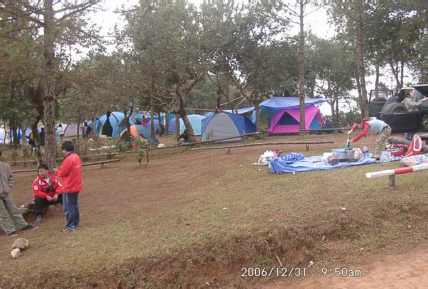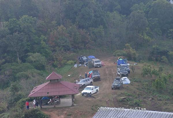 คำตอบที่ 55 เป็นรูปที่ถ่ายตอนเช้า รถและฝูงชนบางส่วนได้เก้บเต๊นท์เดินทางลงจากดอยไปเยอะแล้ว