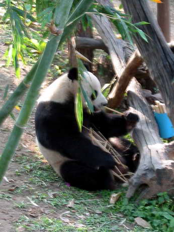 ออกจากยอดดอย ประมาณ 9 โมงเช้า ลงมาถึงเชิงดอยปาเข้าไปเที่ยงกว่า รีบหาข้าวเที่ยงกิน แล้วเดินทางไปเยี่ยมเยียน เจ้าแพนด้ากัน และเนื่องจากเส้นทางไปเยี่ยมชมเป็นเส้นทางเดียวกันกับเส้นทางขึ้นดอยสุเทพ ซึ่งมีนักท่องเที่ยวเข้าไปเยี่ยมชมหนาแน่น ทำให้ถนนห้วยแก้วเต็มไปด้วยรถ และติดขัด กว่าจะไปถึงปาเข้าไปบ่าย3 แล้ว