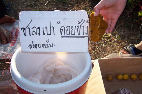 คำตอบที่ 64 แก้วเบียร์ซื้อจากชาวบ้านที่ปางอุ๋งครับพี่เกียขาว 5 บาท ยังมีรูปอีกครับเมื่อคืนง่วงมากก็เลยไปนอนก่อน ผมถ่ายรูปที่ไปประสบวิบากกรรมที่สามเหลี่ยมทองคํา ไว้ด้วย
