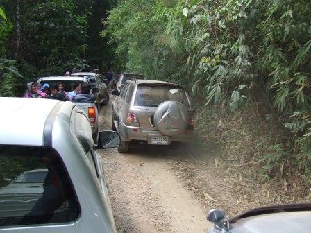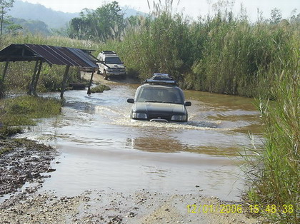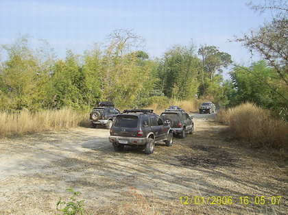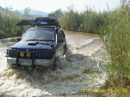คำตอบที่ 82 สนุกเหมือนเดิมครับ แม้จะไม่ได้ไปลุยด้วย เห็นวิ่งผ่านลําธารแล้วเสียวสงสัยรถผมคงถึงกระจกหน้า สังเกตุครับวัฒและนครมีพวงมาลัยอยู่หน้ารถด้วยกันรถ ดับคาลําธาร