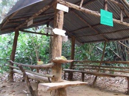 คำตอบที่ 30 ศาลาต้อนรับของหมู่บ้าน เกาะสะเดิ่งวิลล่า........สำหรับนักเดินทางไว้พักแรง..(มีกล้วยป่าวางให้กินด้วย)