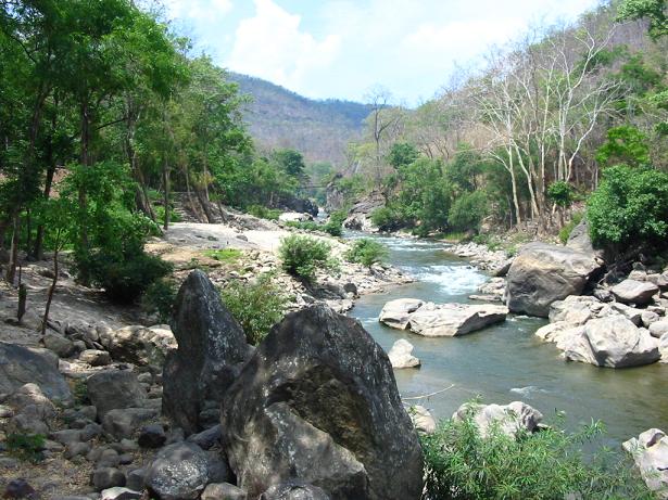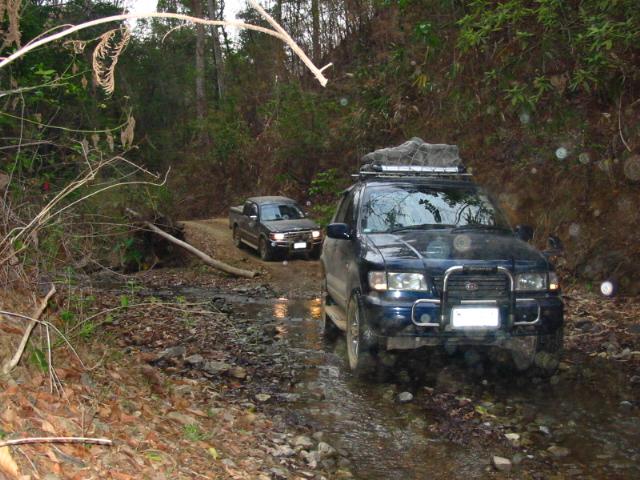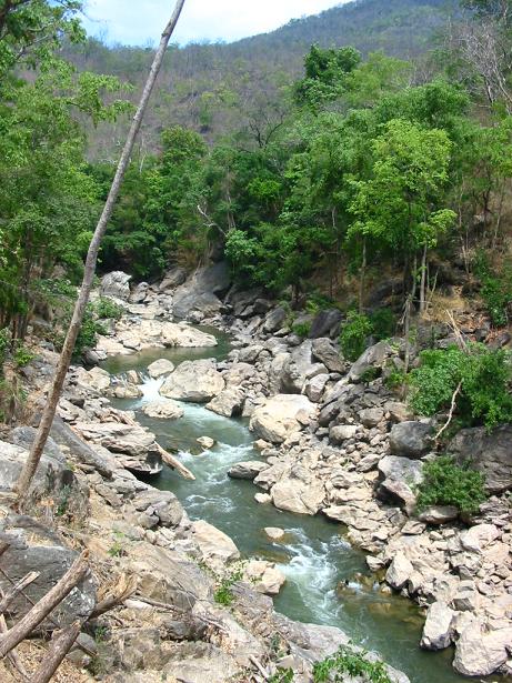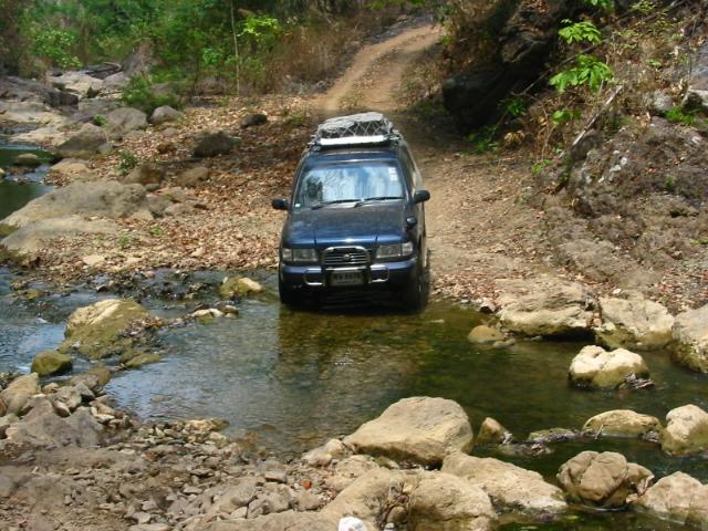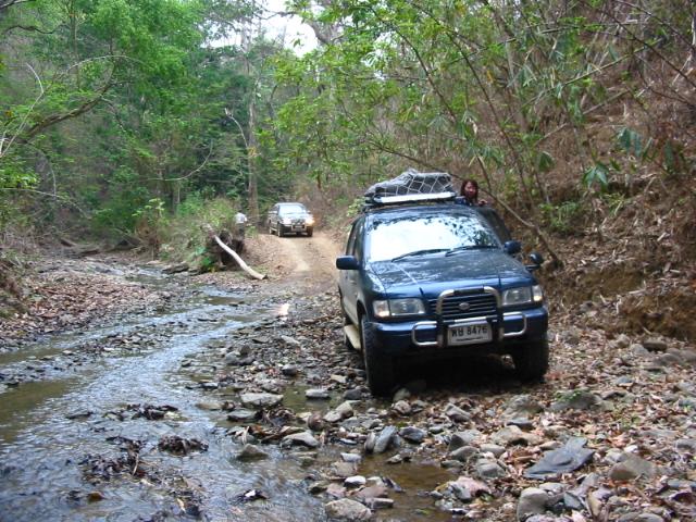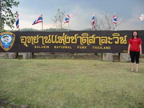 ตัดข้ามมาเลย หลังจากพาขึ้นเขา แล้ว ตอนนี้ก็ถึง เวลาพาลงห้วย เนื่องจากมัวแต่เก็บความประทับใจกันบนยอดเขา ทำให้มาถึง อช.สาละวินเกือบไม่ทันเวลา เข้าบ้านท่าตาฝั่ง เป้าหมายของวันนี้ เนื่องจากเป็นเส้นทางที่วิ่งในป่าไปอีก 37 กม.นับจากตัวที่ทำการอช.สาละวิน ทำให้ต้องจำกัดเวลาในการเดินทางเพราะต้องใช้เวลาอย่างน้อย 3 ชม.