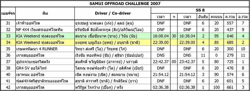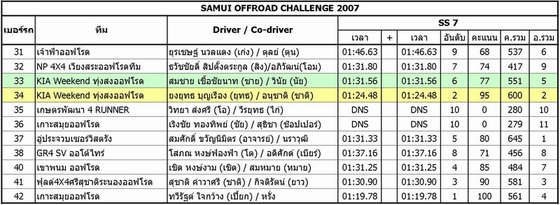 SS 7 เบอร์ 34 เวลา 01.24.48 อันดับ 2 ใน SS นี้ และ เบอร์ 33 เวลา 01.31.56 ได้อันดับ 6 ใน SS นี้