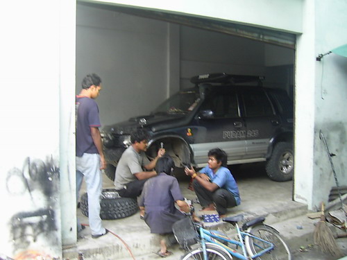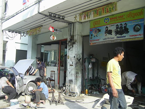 คำตอบที่ 11 ก็เลยหาเรื่องมาอำกันเล่นๆ พอขำๆ ว่าเปิดอู่ใหม่น่ะคร๊าบบบ (รถแข่งคันนี้ยังจอดอยู่กับที่)