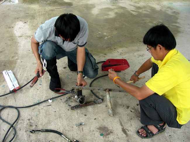 พรุ่งนี้ต้องกลึงและเชื่อมข้อต่อไฮโดรลิค แล้วจะนำไปเปลี่ยนตอนสายๆ คงได้รู้กัน ว่าหมู่หรือจ่า...