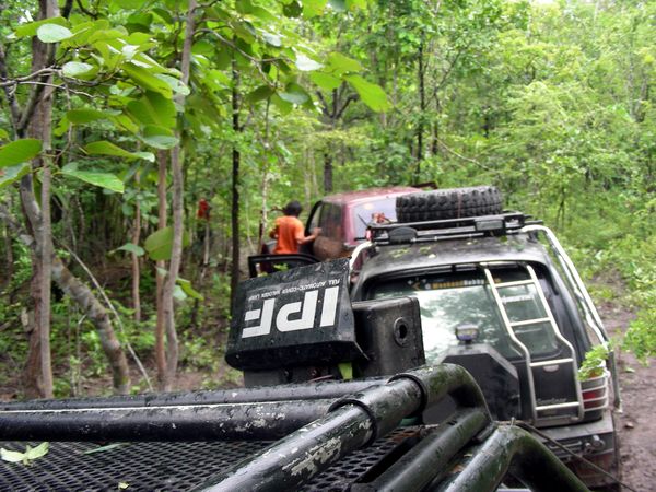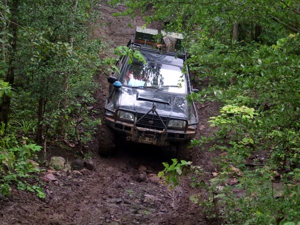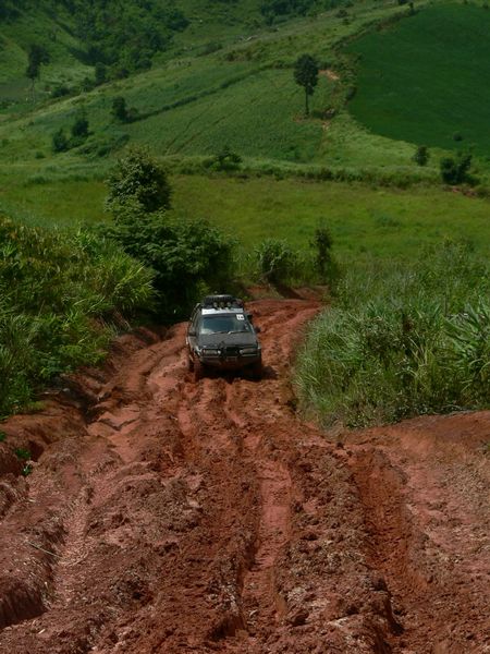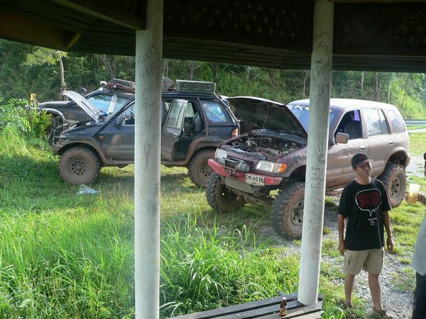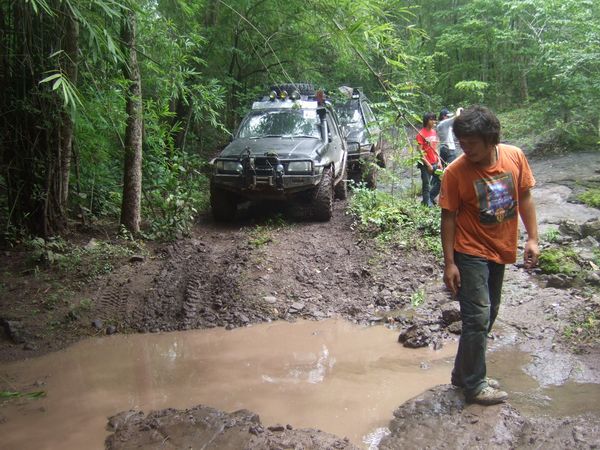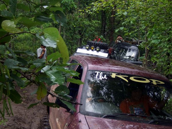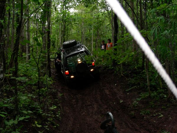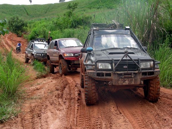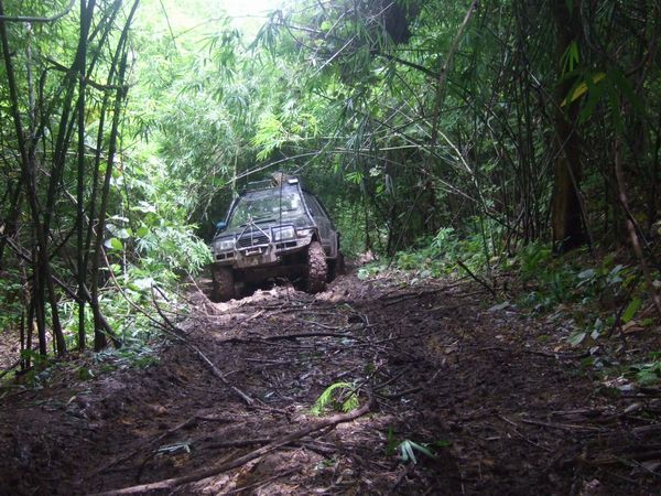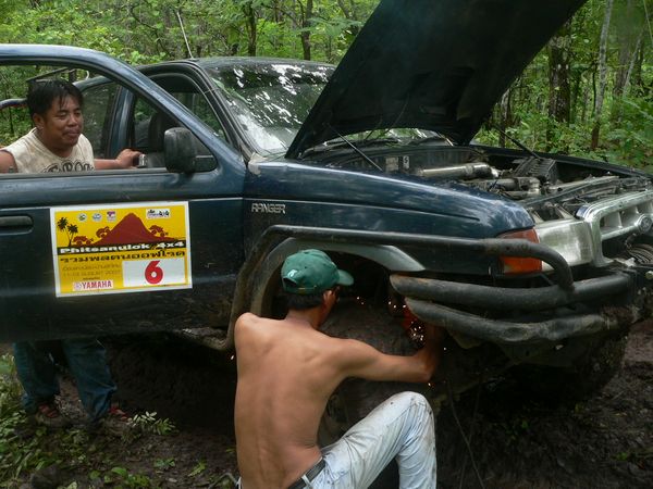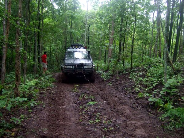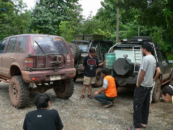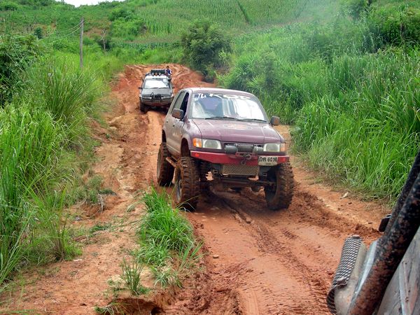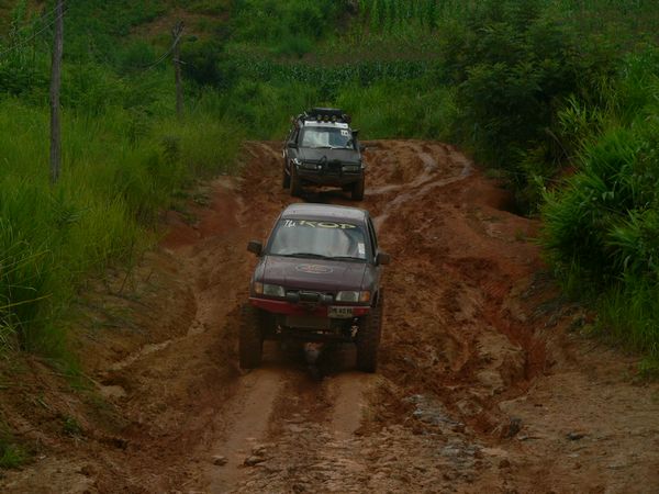 คำตอบที่ 3 เข้าทางอ่างเก็บน้ำบ้านน้ำดำ เข้าไปไม่ไกลเท่าไรพบดาบอ้วนกำลังลากรถอีกคันขึ้นเนิน แล้วรถดาบอ้วนขายึดกระปุกเพาวเวอร์ขาด...