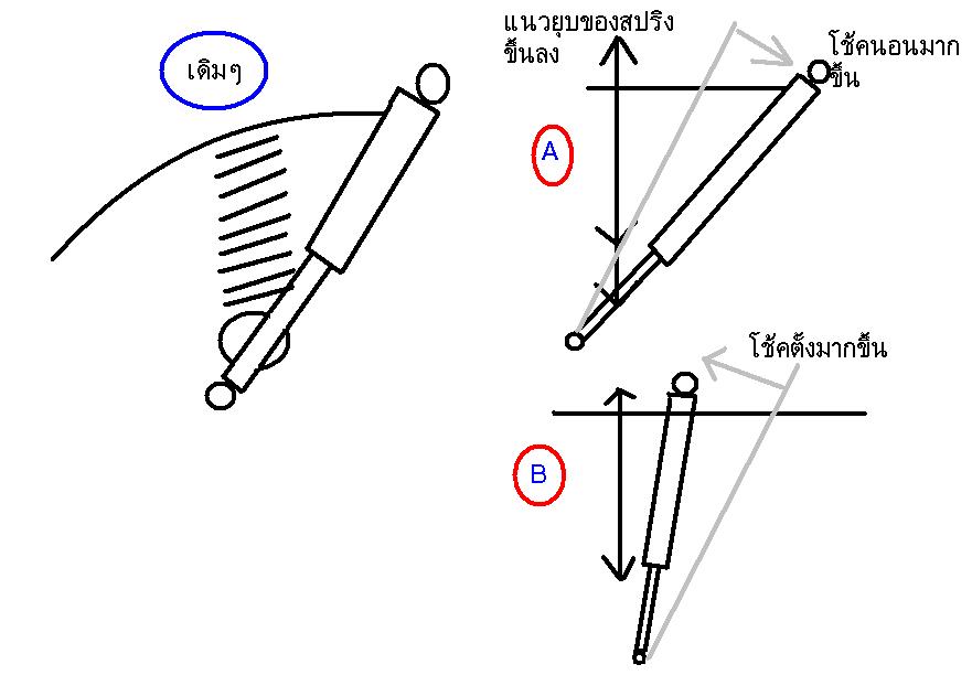 ก็เลยอยากถามความเห็นพี่ๆ ว่า ถ้าเราจัดให้แนวโช้คหลัง (A)เอียงมากขึ้น หรือ (B)ชันมากขึ้นแบบโช้คหน้า ...