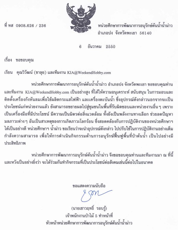 คำตอบที่ 1 กำหนดการ 7-10 ธันวาม 2550 ล้อหมุนเช้าวันที่ 7 ธันวา ไปที่หน่วยศึกษาฯอนุรักษ์ต้นน้ำน้ำม่าว ที่มาที่ไป http://www.weekendhobby.com/offroad/kia/question.asp?page=3&id=6998 รายละเอียดพี่ขาลุยจะลงอีกทีครับ ในภาพ ตำแหน่งที่จะติดตั้ง กังหันลม