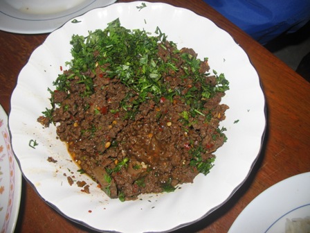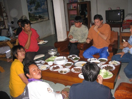 คำตอบที่ 149 มื้อนี้พี่พงษ์ตะวันเพิ่นทำลาบเหนือให้กิน อร่อยที่สุดเลย แว่วมาว่าเคยเป็นเจ้าของร้านอาหารและเป็นกุ๊กใหญ่เองด้วย ที่เชียงราย (เก่งทุกทางจริงๆ)