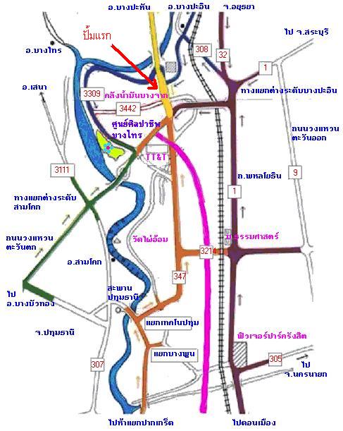 คำตอบที่ 26 พี่ใหญ่นัดจุดนัดพบคือวันที่7 เวลา 8.00 น.ปั้มใหญ่ปั้มแรก ถนน347 จากแยกถนนหมาย9ไปบางปะหัน ถนนเส้นนี้(347) จะไปประจบกับถนนหมายเลข32ที่แยกบางปะหันเพื่อขึ้นภาคเหนือ 1.เส้นทางที่ 1 (สีเขียว) ทางหลวงหมายเลข 9 (ถ.วงแหวนตะวันตก) จากแยกทางหลวง 345 (อ.บางบัวทอง) ซึ่งมาได้จาก จ.สุพรรณบุรี-ตลิ่งชัน หรือปทุมธานี ผ่านแยกต่างระดับสามโคก-ข้ามสะพานข้ามแม่น้ำเจ้าพระยา-ผ่านทางด่วน-เลี้ยวซ้ายเข้าถนน347ไปบางปะหัน พบกันปั้มใหญ่แรก 2.เส้นทางที่ 2 (สีส้ม) ทางหลวงหมายเลข 306 (ถ.ติวานนท์) จากห้าแยกปากเกร็ด-ผ่านแยกสวนสมเด็จ-ผ่านแยกปากคลองรังสิต-ผ่าน แยกบางพูน-เลี้ยวขวาที่แยกเทคโนปทุมธานีเข้าทางหลวงหมายเลข 347 (ปทุมธานี-บางปะหัน) ข้ามถนนหมายเลข9 ไปบางปะหัน พบกันปั้มใหญ่แรก 3.เส้นทางที่ 3 (สีบานเย็น) ทางด่วนสายปากเกร็ดบางปะอิน-ลงทางด่วนบางปะอินเลี้ยวขวาไปประมาณ 800 เมตร เลี้ยวซ้าย ถนน347 ไปบางปะหัน พบกันปั้มใหญ่แรก