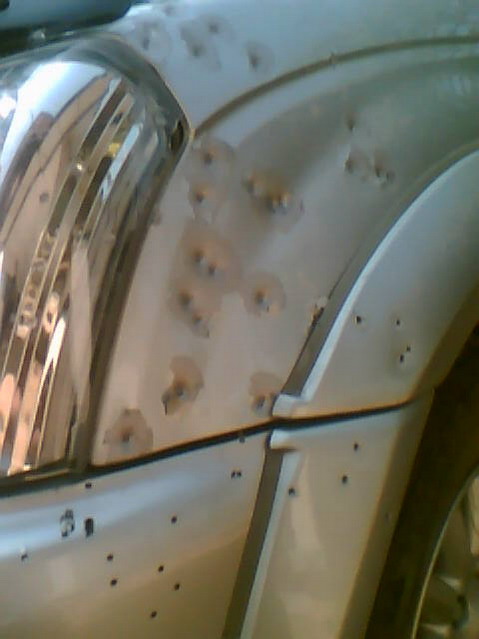 > อนนั้นความเร็วรถ140/ชม.ผมไปล้างรถและนับรอยกระสุนทั้งหมด78รู(ถ้ายางรถระเบิดไม่อยากจะคิด)