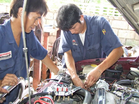 คำตอบที่ 7 ช่าง กำลังเครื่องเพื่อติดระบบหัวฉีด