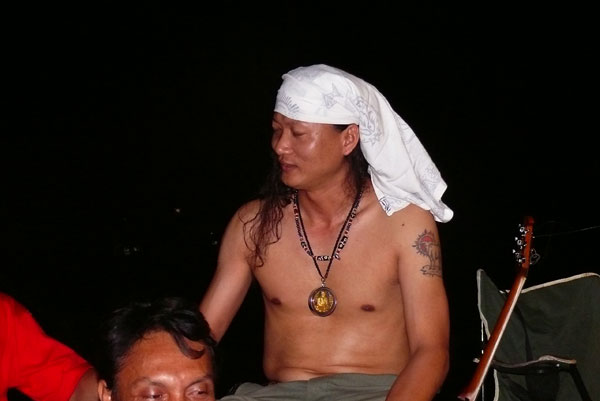 โดยใช้น้ำเก่าหรือใหม่ก็ได้ซึ่งใส่ข่า ใบมะกรูด กระเทียม เกลิอ พริกแกง(ตำเอง) รอไว้แล้ว