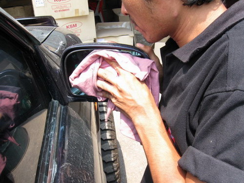 คำตอบที่ 8 ช้างที่ร้าน นำกระจกของใหม่ ที่เลือกไว้ เปลี่ยนกลับเข้าไป ใส่ให้เหมือนเดิม