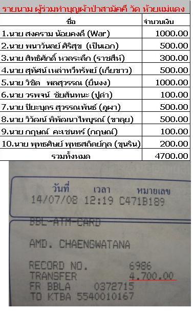 ขอขอบพระคุณทุกท่านที่ได้ร่วมกันทำบุญครั้งนี้นะครับ ขอให้ได้บุญกันถ้วนหน้า คิดสิ่งใดสมปราถนา ร่ำรวยๆๆกันทุกคน สำหรับยอดเงินที่ได้จากการทอดผ้าป่าครั้งนี้ รวมทั้งสิ้น 50,000 บาท ครับ รายละเอียดพร้อมรูปถ่ายจะนำมารายงานให้ทราบอีกครั้งครับ อาจจะช้าหน่อยเพราะต้องรอทางวัดสรุปอีกทีและตัวผมเองต้องไปราชการฝึกอบรมที่เพชรบุรี1สัปดาห์เต็มๆ (21-25 กค)ไม่แน่ใจว่าจะได้เล่นเน็ต