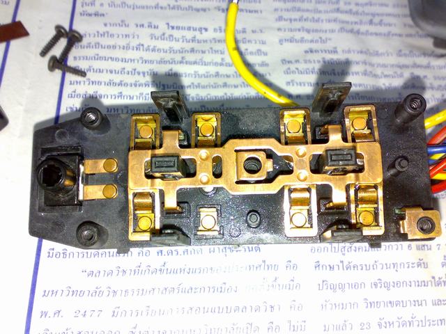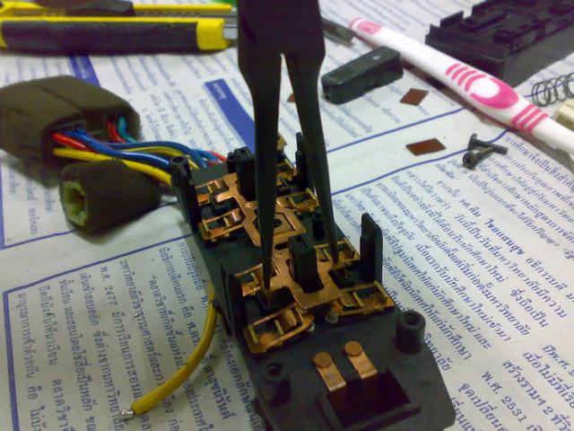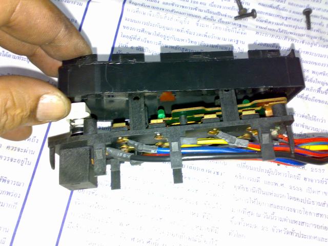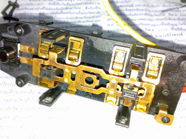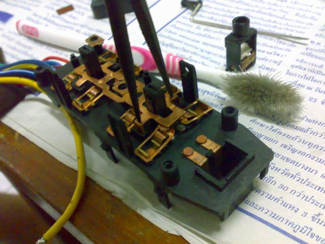 คำตอบที่ 29 หลุดเลยครับ ไม่ยากครับ ใช้น้ำยา คอนแท็ค อย่างเดียวก็ได้ครับ หรือใช้ทินเนอร์ ด้วยก็ได้ครับ ถ้าทินเนอร์ระวังโดนพลาสติดนะครับ เดี๋ยวจะด่างครับ ถ้ามีน้ำยาล้างคอนแท็คอยู่แล้วก็ฉีดเลยครับถ้ามีหัวแร้ง ก็ถอดออกมาขัดแบบผมก็ยิ่งดีครับ จะมีอยู่จุดนึงที่ต้องบักกรีออกคือสายสีเหลืองในรูป ถึงจะเอาแผ่นทองเหลืองด้านบนออกได้ครับ อ้อ วิธีนี้ ใช้กับอาการฝืด ไม่ได้นะครับ เพราะกระจกฝืด เป็นที่ฝุ่นที่ยางกันฝุ่นครับ ขออภัยครับ ถ่ายรูปไม่ค่อยละเอียด ครับ