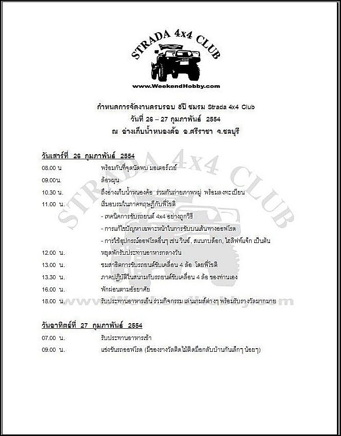 ลงชื่อผู้ที่จะเข้าร่วมงาน 8 ปี Strada 4x4 Club อ่างเก็บน้ำหนองค้อ อ.ศรีราชา 26-27 ก.พ. 2554