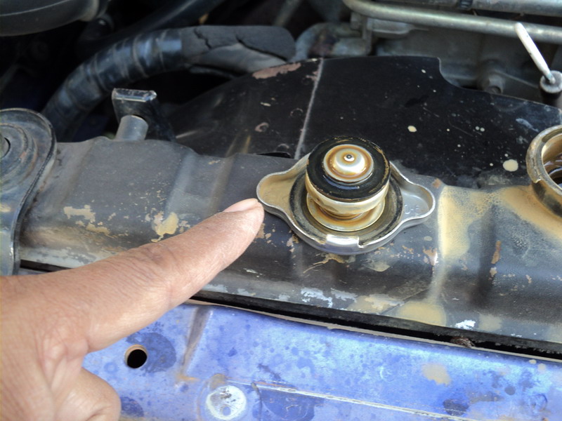 ในความเข้าใจของคุณเสือกะหร่อง คิดว่าขอบของฝาหม้อน้ำมากดทับสายยางท่อพักหม้อน้ำเป็นเหตุให้นำหล่อเย็นไม่สามารถดูดกลับมาหม้อน้ำได้และระดับนำหล่อเย็นในหม้อน้ำก็น้อยจริง