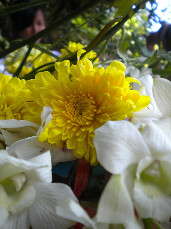 น้องๆนักเรียนช่วยกันจัดดอกไม้