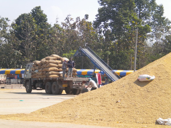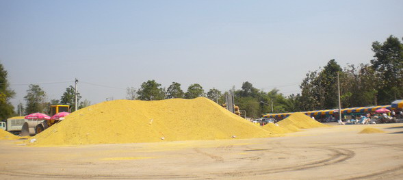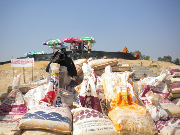 กองข้าวที่ใช้ในโรงทาน บริเวณรอบๆโรงทานเยอะมากจุดบริการน้ำดื่มก็เยอะครับ