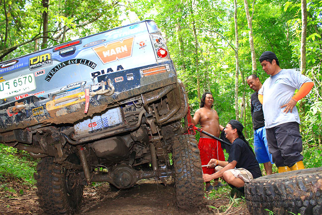 บ่อสุดท้ายก่อนออกจากลิ่นถิ่น ล้อหลังขวา เบียดแบงก์ จุ๊บขาด จำเป็นต้องใช้ยาง 35 แทน
