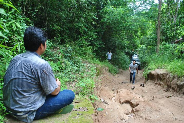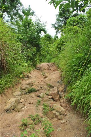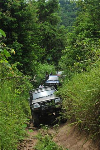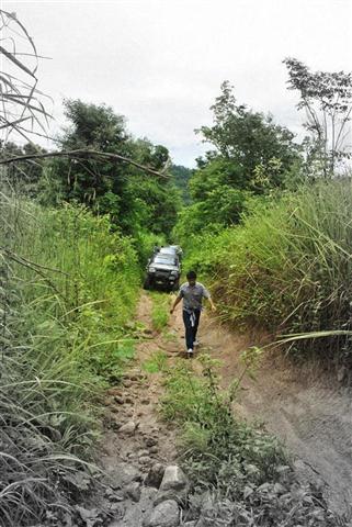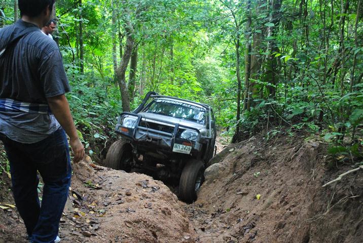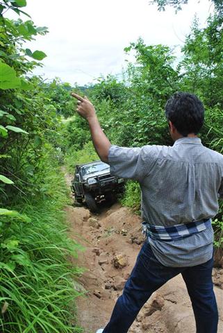 ก็ช่องมันแคบ...ขวาก็ต้นไม้...ซ้ายก็ก้อนหิน..มันจะไปได้งัยเนี่ย