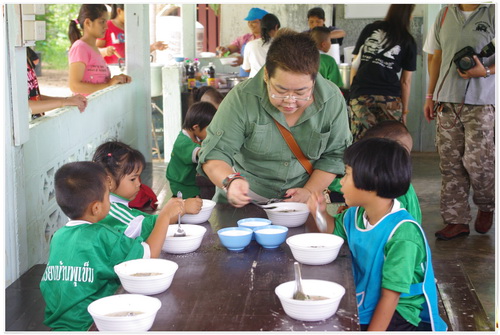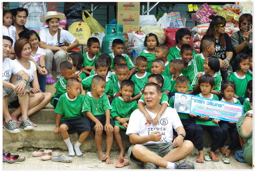 ... เริ่มขนของลงไปให้น้องๆกันครับ ....