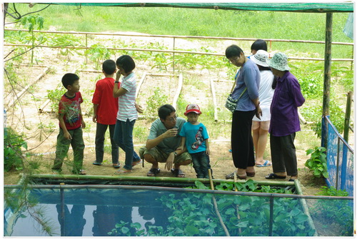 .... ข้างโรงอาหารมีแปลนผักและบ่อปลาด้วยล่ะ .....