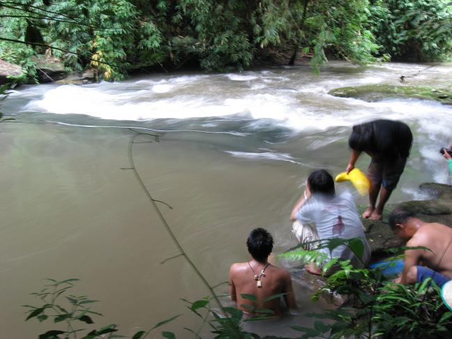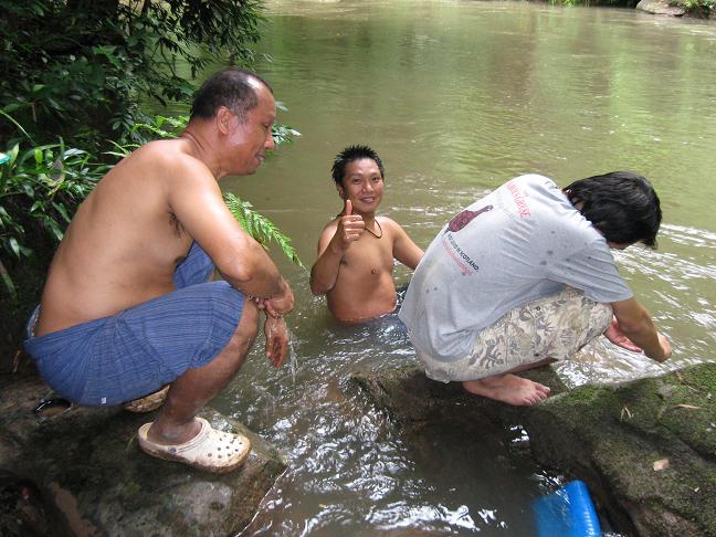 ขอเท้าความวันออกเดินทาง ออกจากอู่ชาติพร้อมกัน 2คันประมาณ 2ทุ่ม มีพี่นุ+de boy กับ พี่ต้อง+ชาติ ไปนัดเจอกับป๋าหงบ(พี่หนุ่ม ลำลูกกา) อีก 1คัน และที่ตามมาห่างๆเพราะมัวแต่หาซื้อเบียร์ข้างทางอยู่ คือ Nott+Holl ณ ศีชา ที่มาด้วยกัน พอครบแล้วก้อรีบบึ่งจุดหมายทันที โดยมี "พี่อ้อ" Trip leader และ ที่สำมะคัญยิ่ง "ละอ่อน" ที่ตีรถมาจากร้อยเอ็ดไปรออยู่บนเขาค้อแล้ว...ไปถึงเขาค้อเช้ามืด แวะตลาดสดจัดเสบียงขึ้นรถก่อนขึ้นไปนั่งผึ่งพุงรอพระอาทิตขึ้น...เมื่อเจอกันครบแล้ว ร่วมกัน Breakfast ก่อนเข้าวัดเพื่อร่วกันทำบุญถวายเทียน และสังฆทานก่อนออกตะลุยป่าหิมาลัย ต้นน้ำ "ลำน้ำเข็ก"...