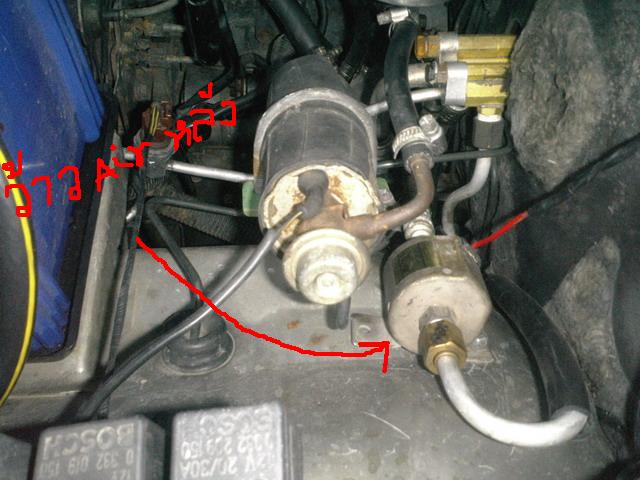 ที่เพิ่มเติมขึ้นมาอีกคือ วาล์วแอร์(ศรชี้) กะตัวแยกน้ำยา(ที่เห็นเป็นทองเหลืองในภาพหาซื้อได้ตามร้านFitting) ตัวตรงกลางเปนปั้มติ้กไม่ต้องไปสนใจมันคับ