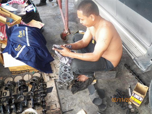 ได้รับของแล้วครับ สภาพใช้ได้แต่ช่างบอกให้ชัว เอาไปเทสน้ำก่อนที่ร้านกลึง แล้วขัดหน้าอีกนิด ไม่มีปัญหาชัว เช้านี้เลยให้ช่างเขาเอาไปทำก่อน แล้วจะถ่ายรูปมาลงให้ดูเป็นกรณีศึกษา และช่างบอกว่าไหนๆ ก้ยกลงแล้วตรวจสอบทั้งเครื่องเลยดีกว่า เช็คชิ้นส่วนทั้งหมด ว่าต้องเปลี่ยนอะไรบ้าง สภาพกระบอกสูบ แบริ่งต่างๆ เพลาขอ้เหวี่ยง จะได้ใช้งานยาวๆไปเลย ก็เห็นด้วยนะ บอกช่างให้จัดไปเลย