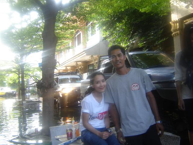 สู้เมื่อวานไม่ได้ลุยไปบ้านจักจันน้ำเข้ารถเลยเนว์ไม่มีใช้ตากล้องลงไปลุยน้ำยืนเป็นหลักเพื่อให้พ้นเกาะก