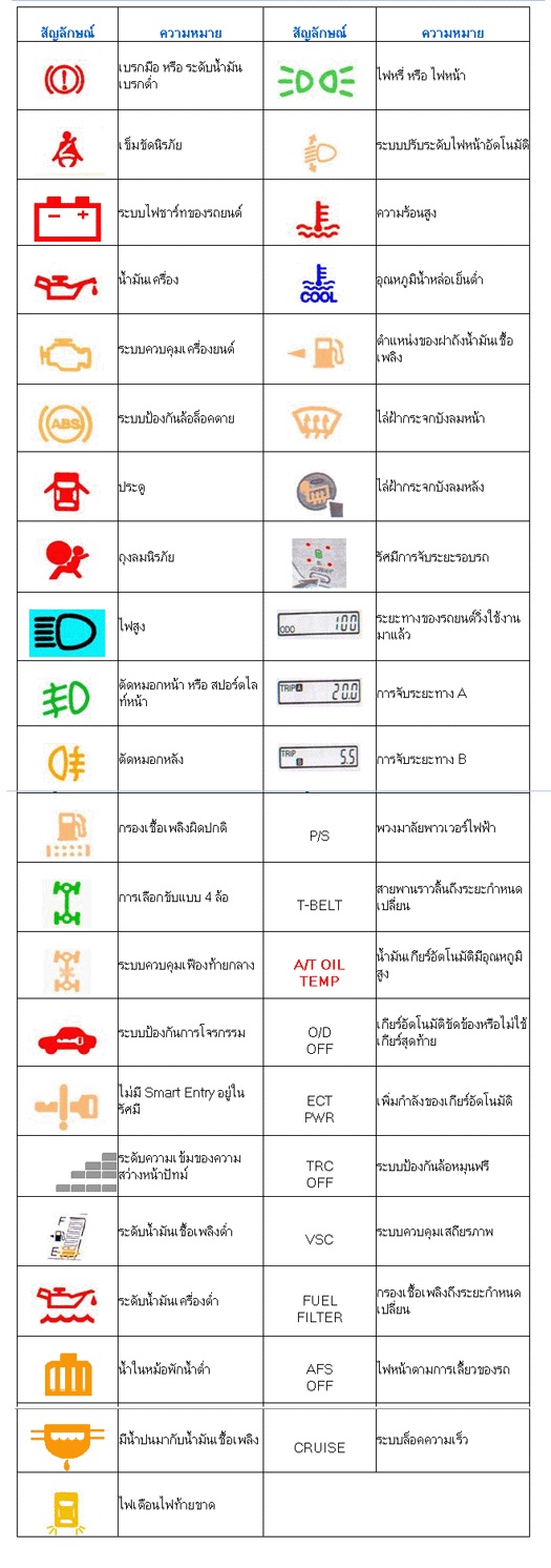ความหมาย ไฟโชว์หน้าปัดต่างๆ