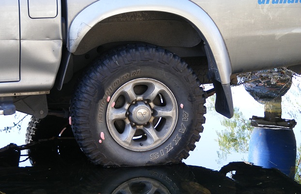 ความสูงคานเกิบถึงสุดล้อ ไม่เคยลุยมิดล้อ น้ำเลยไม่เข้า ไม่รู้ว่า ถ้าลุยน้ำถึงตรงนี้ น้ำจะเข้าเฟืองท้ายไหม