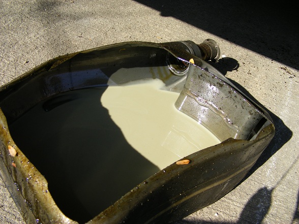 ของผม เติม น้ำมันเฟืองลิตรหนึ่ง แล้ววิ่ง วนปั๊มรอบหนึ่ง แล้วถ่ายออก มันยังมีน้ำปน สีน้ำนม