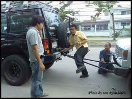 การลากด้วยโซ่ สลิง สำหรับผมแล้วถือว่าอันตรายมากที่สุด ยิ่งถ้าเครื่องยนต์เสียด้วยแล้วละก้อ กดเบรคทีแทบจะต้องลุกยืนขย่มกันเลย