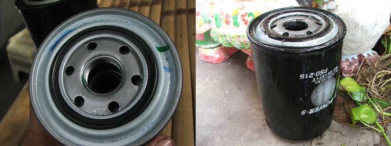- กรองน้ำมันเครื่อง , อันนี้ก็สงสัยว่า ก็เปลี่ยนเสร็จแล้ว ใช้ได้อยู่ตั้งสองวันน่ะ แต่เอาเหอะ มันเปลี่ยนง่ายกว่า ปั๊มว่ะ ลองดูจักหน่อยดิ