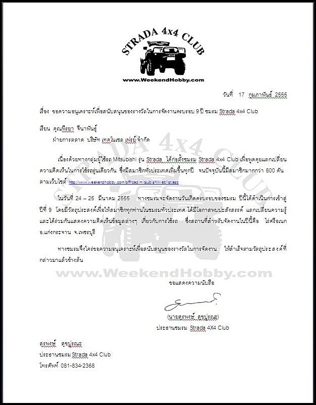 จดหมายขอสปอนด์เซอร์ทั้ง2ฉบับ ผมส่งเมื่อตอนที่ยังดำรงตำแหน่งประธานชมรมStrada4x4club