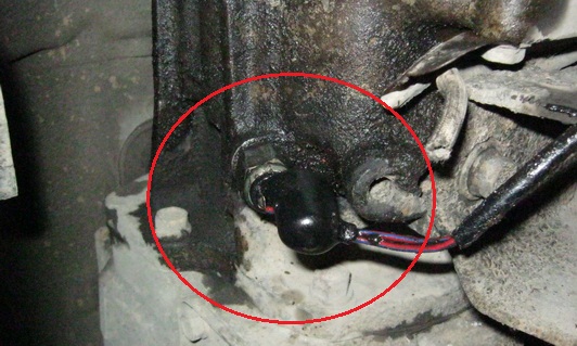 มุดลงไปก็เจอ สวิทช์ตัวจำเลยเยิ้มเลย ลองถอดดูด้วยประแจเบอร์19 โยกไม่ออกเลยครับ ถอดใจเก็บของไปพึ่งช่างดีกว่า อุปกรณ์ผมไม่ครบด้วยไม่เสี่ยงล่ะ