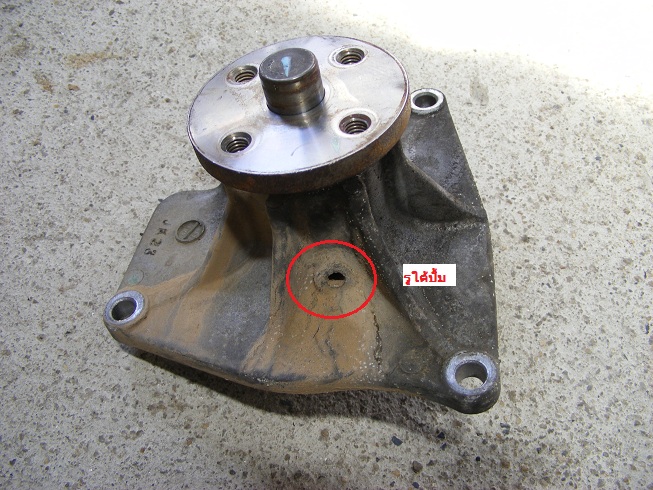 เลยลองถอดหม้อน้ำ ถอดใบพัดออก ก็ไม่เห็นอีก คราวนี้ถอกมู้เลย เจอว่าน้ำออกมาจากรูใต้ปั้ม