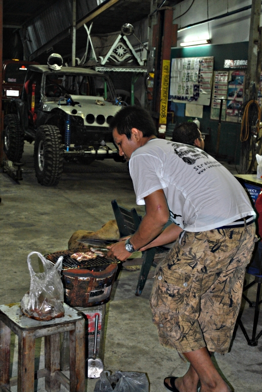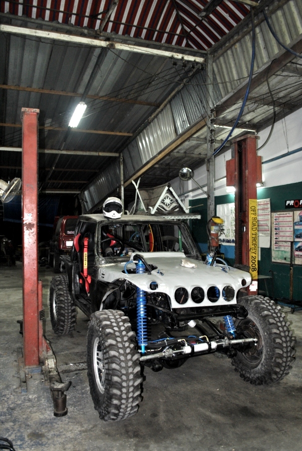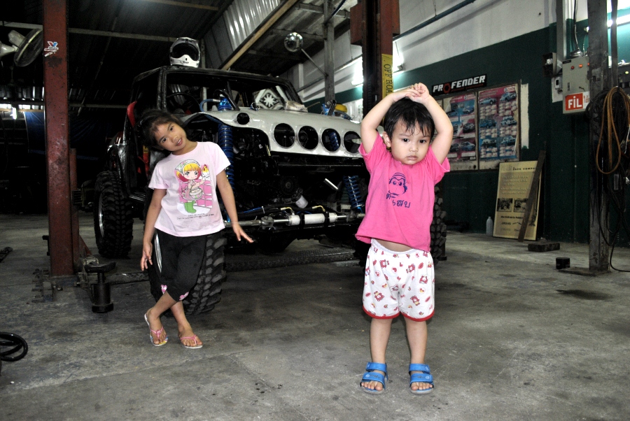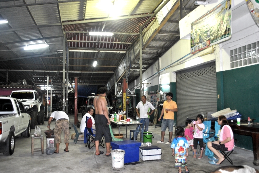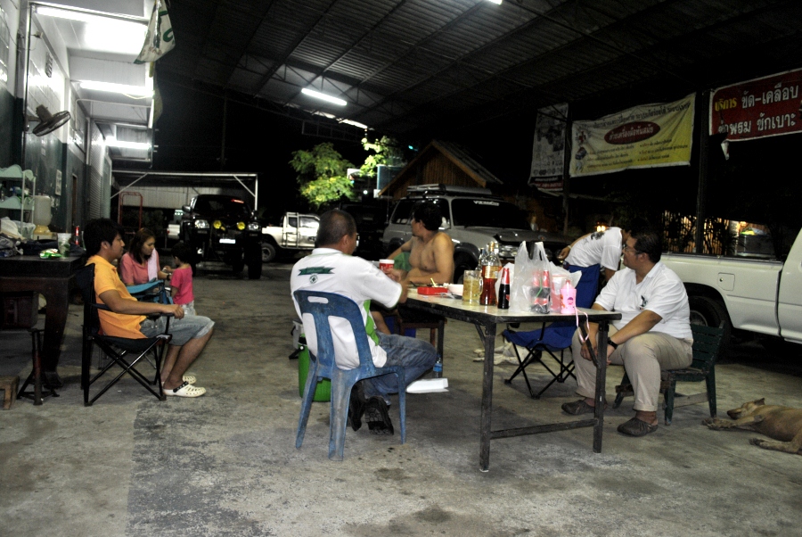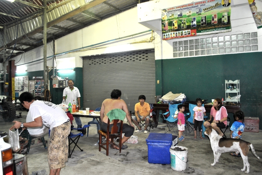 จากนั้นฝนก็กระหน่ำลงมา เลยต้องย้ายไปที่อู่พี่ศร...