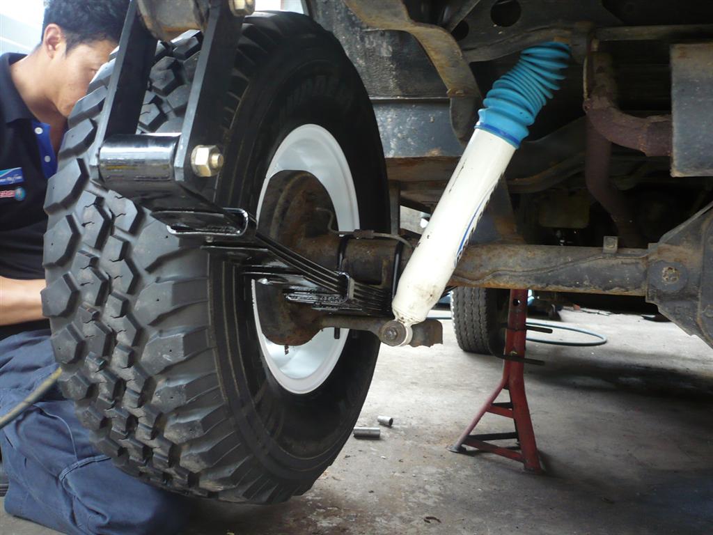 หรือใส่แหนบ ยกรถขึ้นดูว่าแหนบห้อยจนสุดแล้ววันระยะ หูโช๊ค