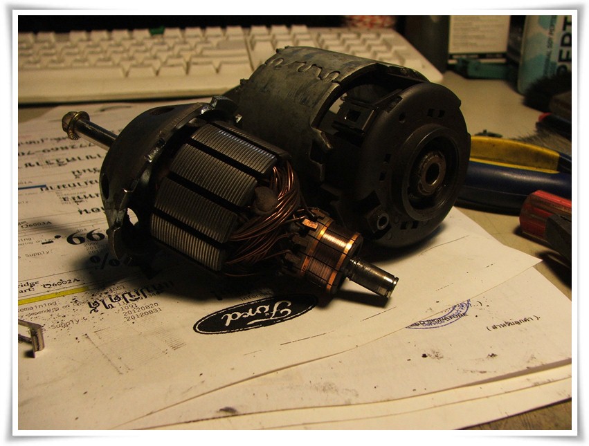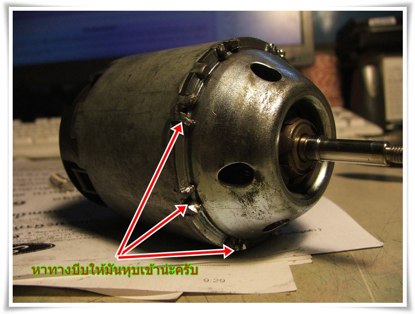 ใช้วิชามารกำปั้นทุบตรงตูดมอเตอร์พัดลม(เขาเรียกอะไรน่ะ โบวเออร์ หรือเปล่า) แรกๆก็ทุบแล้ว มีลมออก พักหลังต้องออกแรงมากกว่าเดิม และ ต้องหลายๆครั้ง บางทีต้องรัวเป็นชุด 555 มีฮุค มีตุ้ย มีแย็บ ครบเซ็ต อิอิ