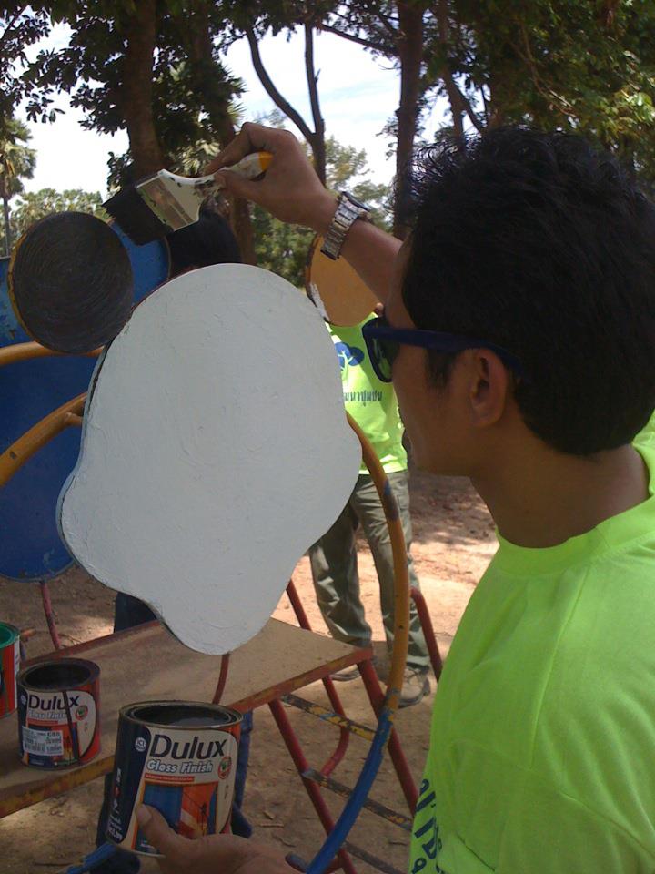 ช่วยกันทาสีโรงอาหารโรงเรียน ขอบคุณ ICI อนุเคราะห์สีมาครับ
