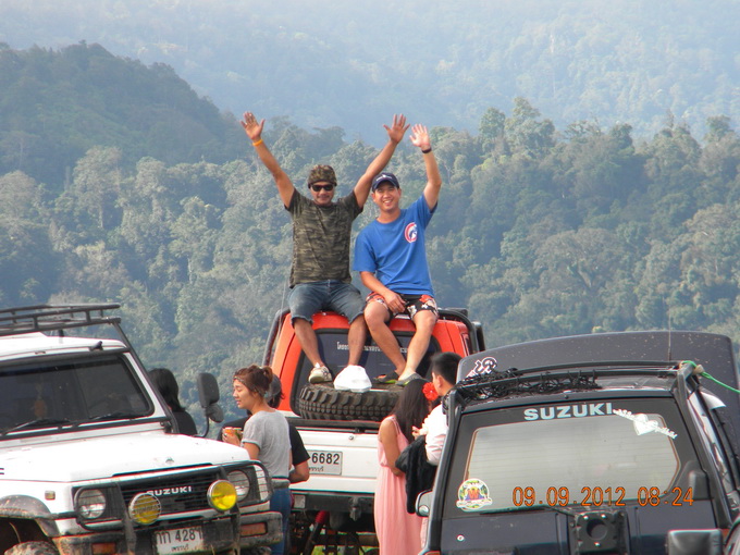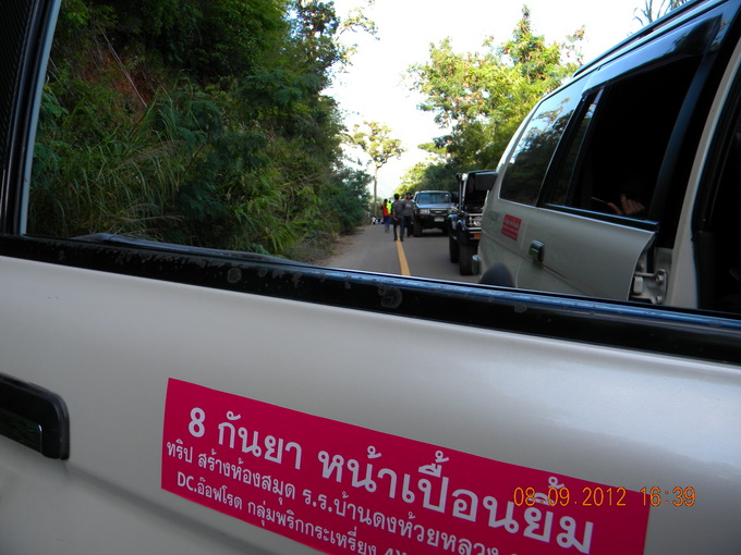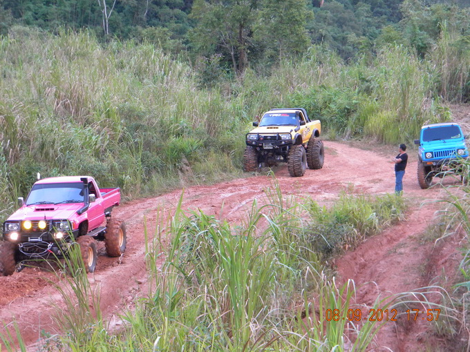 เสร็จจากงานทำบุญร่วมกับพี่อนุสรณ์...พวกเราก็บึ่งไปหาที่นอนเย็นๆกันแถวสวนผึ้ง...เรามากันที่เขากระโจมครับทริปนี้16คัน...ครัทช์พังไป1ตีลังกาไปอีก1.....เหลือรอดมาได้14คันครับ....ทางในช่วงนี้ฝนลงเกือบทุกวันลื่นพอได้ครับ....ใครจะมาเที่ยวขอเป็นยางดอกMUDน่าจะไปสบายกว่าอ่ะครับ....ร่องมีลึกบางช่วง..สอบถามพี่ๆตชด.ก็ทราบว่า...ไม่มีการบำรุงทางมากว่า2ปีแล้วครับ....ช่วงทางดำประมาณกม.ที่2-3ไม่แน่ใจ...ถาดเลนซ้ายขาดหายไปทั้งเลนครับ..โปรดระมัดระวังกันด้วย...