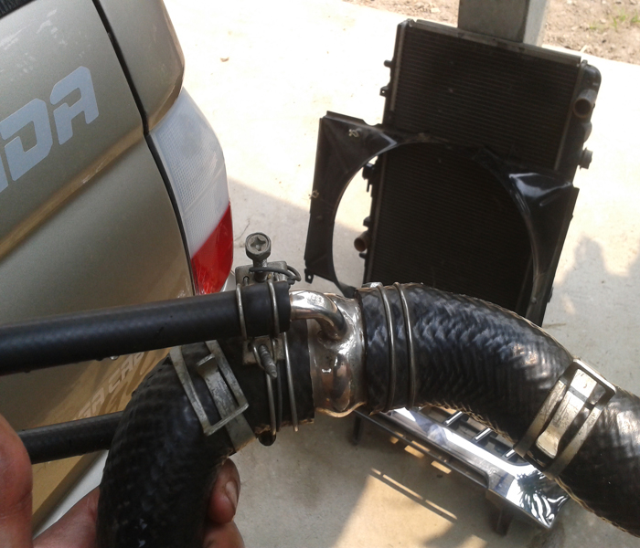 อีกมุมหนึ่งครับ ถอดท่อลม ออกด้วยเน้อ (ท่อลมหรือปล่องลม ) อยู่ติดกับหม้อนํ้าหนะปล่องลม