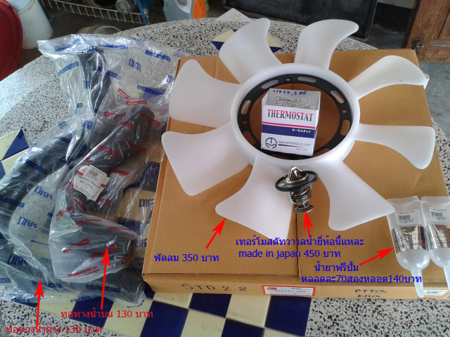 นี่คืออะไหล่ทั้งหมดที่ต้องซื้อเปลี่นทั้งหมดทั้งมวลนี้ ถอดเองประกอบเอง ส่วนปะเก็นเหลวทรีบรอนด์+นํ้ายาหม้อนํ้าแบบเติม ของเก่าเหลือเลยไม่ซื้อ